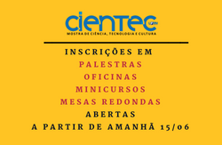 As inscrições gratuitas para participar das palestras, oficinas, mesas redondas e minicursos ofertados na XXIV CIENTEC abrem nesta sexta-feira, dia 15 de junho. Para se inscrever basta seguir os seguintes passos: